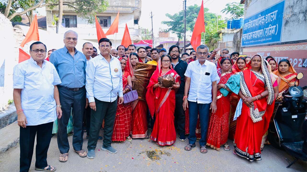 खास बात यह रही कि भोजन करने देवांगन समाज के लोग माता परमेश्वरी की प्रतिमा और सेन समाज के लोग संत शिरोमणी सेन जी महाराज की तस्वीर एवं श्रीराधाकृष्ण भगवान की तस्वीर, ध्रुव आदिवासी समाज के लोग अपने पारंपरिक वेशभूषा में पहुंचे थे। उनका स्वागत बाजे-गाजे के साथ श्रीराधाकृष्ण मंदिर के ट्रस्टी मोहनलाल, गोपाल गिरधारी अग्रवाल के अलावा शहरवासियों ने किया। फूलों की वर्षा की गई। लोग नाचने झूमने लगे। मंच संचालन राजू काबरा एवं सरोज कंसारी ने की। इस दौरान देवांगन समाज, सेन समाज, पटेल समाज, कहार समाज, धोबी समाज, कुम्हार समाज का सम्मान किया गया। पूर्व विधायक संतोष उपाध्याय का तिलक वंदन कर उपर्णा ओढ़ाकर सम्मान किया गया।