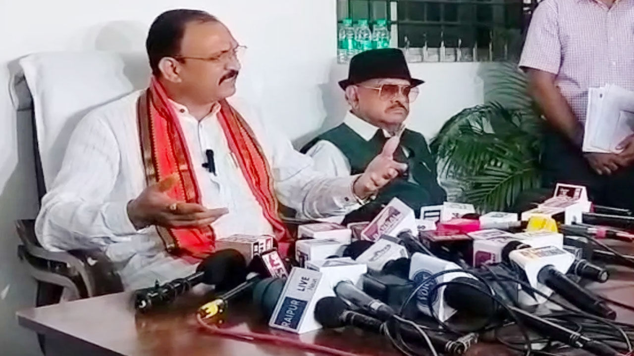 पत्रकारों से चर्चा करते हुए स्वास्थ्य मंत्री श्याम बिहारी जायसवाल