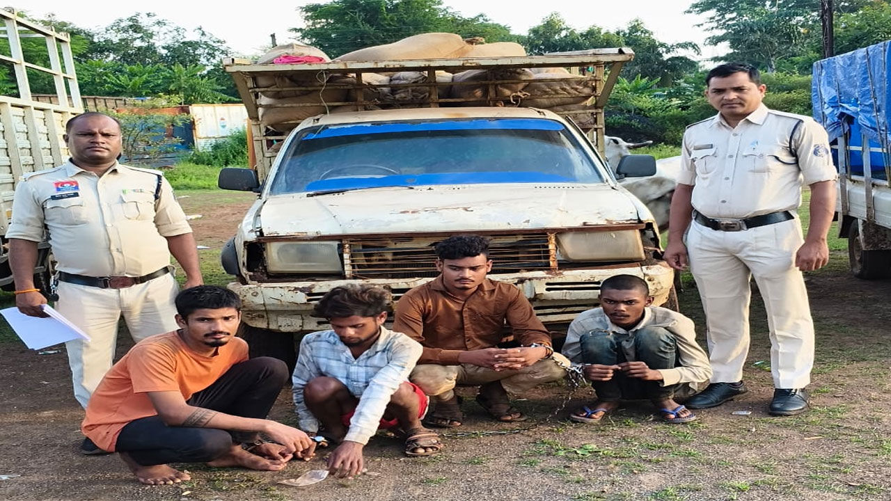 धान संग्रहण केन्द्र में चोरी करने वाले चार आरोपियों को पुलिस ने गिरफ्तार किया है। आरोपियों के पास से 30 बोरी धान वाहन जब्त किया गया।