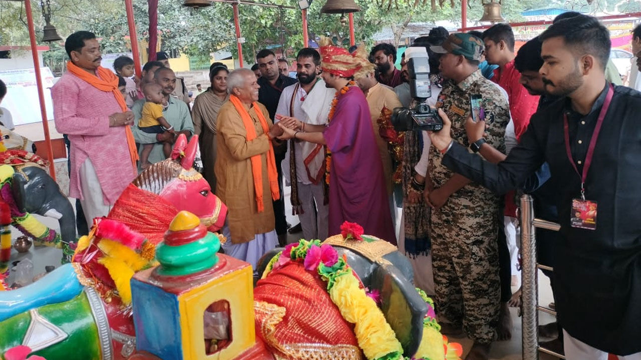 धमतरी पहुंचे पंडित धीरेंद्र कृष्ण शास्त्री: मां अंगारमोती की पूजा- अर्चना कर लिया आशीर्वाद