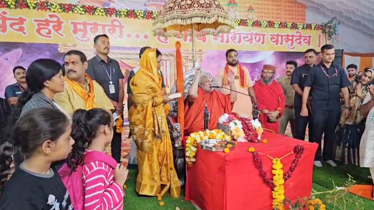 पेंड्रा में जगतगुरु रामभद्राचार्य की कथा: कौशल्या साय पहुंची आशीर्वाद लेने, मांगी प्रदेश की खुशहाली