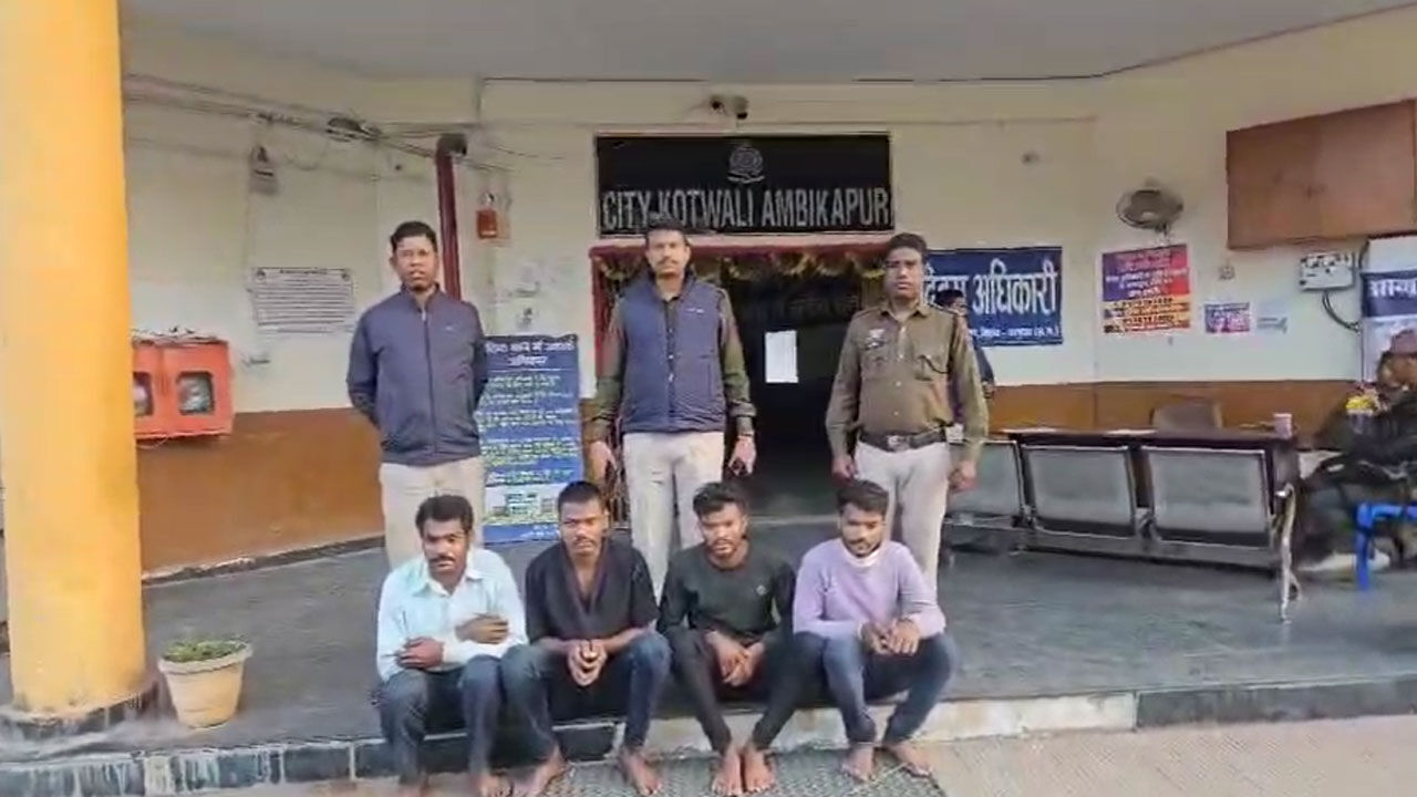 सरगुजा पुलिस ने डीजल चोरी करने वाले चार आरोपियों गिरफ्तार किया है। मौके से आरोपियों के कब्जे से स्कॉर्पियो वाहन, गुलेल, 220 लीटर डीजल समेत अन्य सामान जब्त किया है।