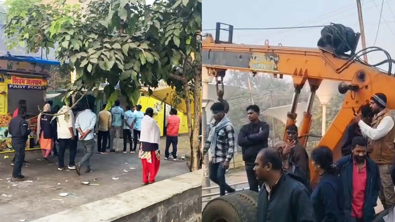 साइंस कॉलेज चौपाटी पर चला बुलडोजर: विरोध करने पर पूर्व विधायक विकास उपाध्याय समेत कई कांग्रेसी गिरफ्तार