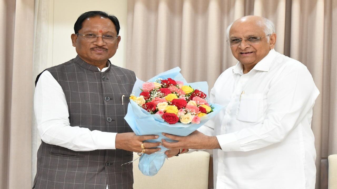 गुजरात पहुंचे सीएम साय: गांधीनगर में मुख्यमंत्री भूपेंद्र पटेल से की भेंट, दोनों ने अपने- अपने अनुभव किए साझा