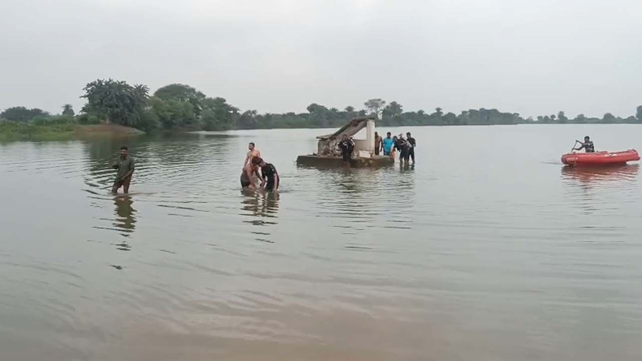 SDRF की टीम युवक के शव को बाहर लाते हुए