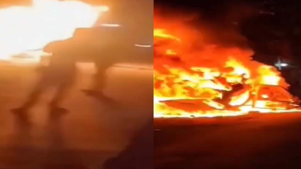 गाड़ियों में लगाई आग