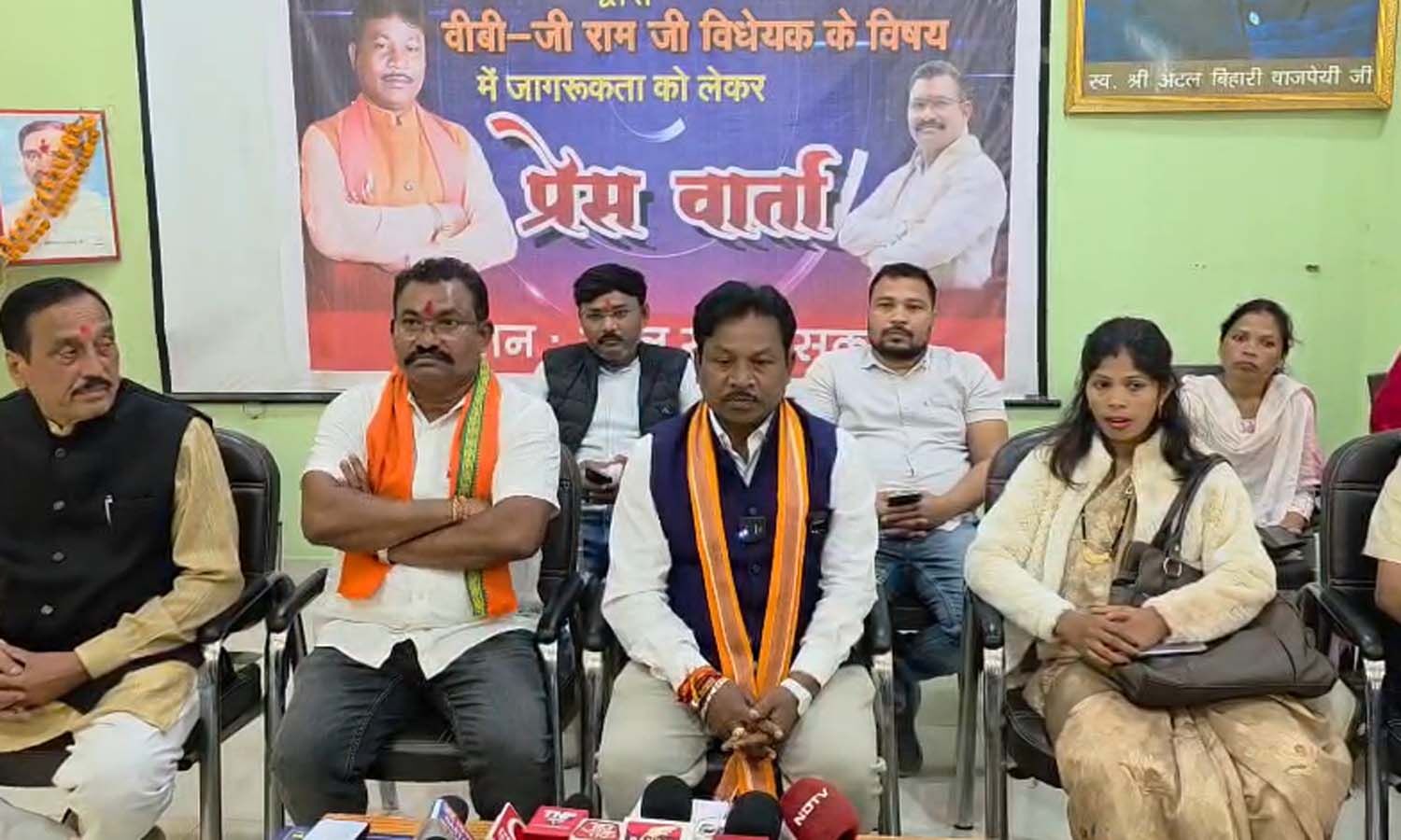 जी-राम-जी अधिनियम पर प्रेस कॉन्फ्रेंस करते सांसद महेश कश्यप