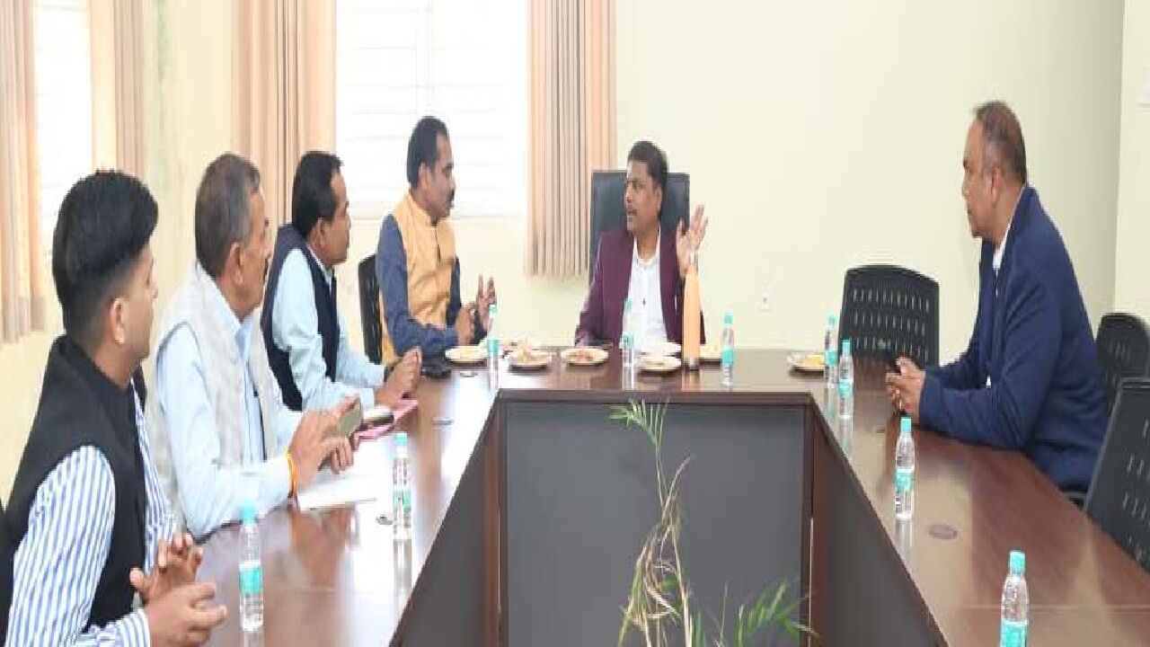 अधिकारियों से बातचीत करते मंत्री केदार कश्यप