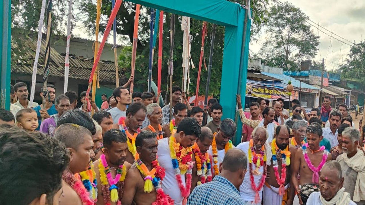 पारंपरिक अंदाज में ज्योति- जंवारा विसर्जन: नाचते- गाते हुए धार्मिक अनुष्ठान करते दिखे पंडा
