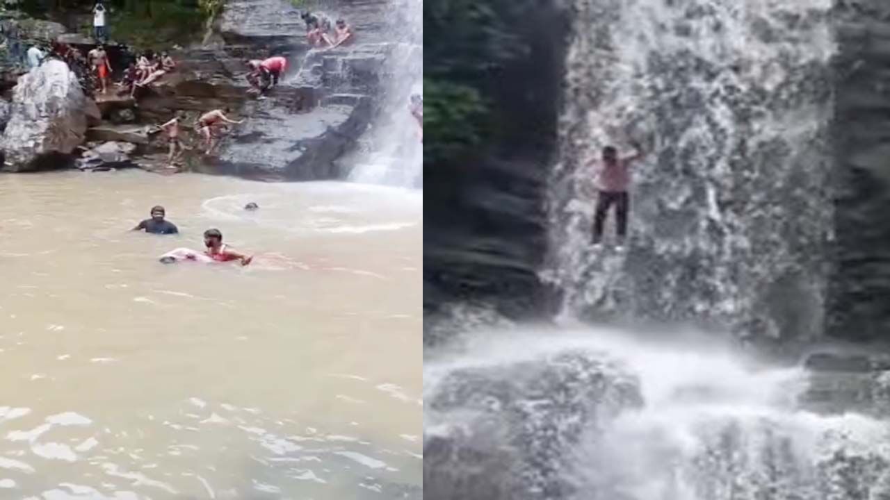 धसगुड़ जलप्रपात में हादसे का VIDEO: नीचे से ऊपर चढ़ते हुए फिसला, 40 फिट की ऊंचाई से गिरा युवक