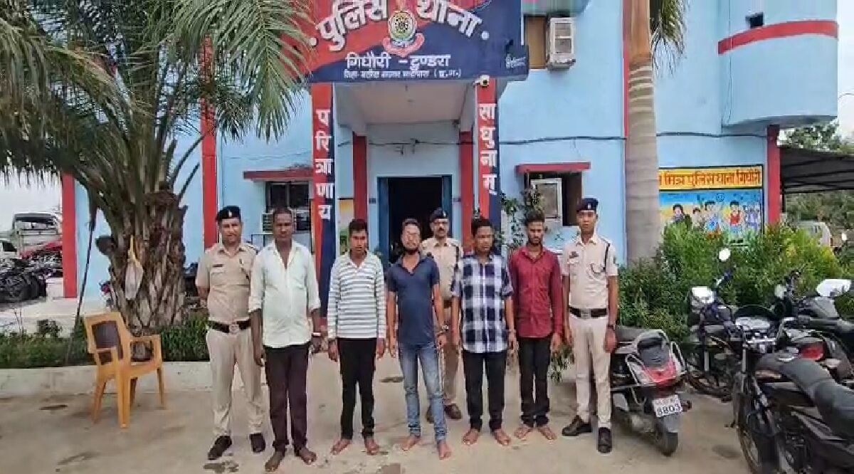 इस घटना की रिपोर्ट थाना गिधौरी में प्राप्त होते ही पुलिस अधीक्षक भावना गुप्ता द्वारा घटना को गंभीरता से लेते हुए तत्काल आरोपियों की गिरफ्तारी हेतु थाना प्रभारी गिधौरी को निर्देशित किया गया। निर्देशों के पालन में त्वरित कार्यवाही करते हुए पुलिस द्वारा प्रकरण में शामिल पाँच आरोपियों को हिरासत में लिया गया है। पूछताछ में आरोपियों ने अपने अपराध को स्वीकार किया है।
