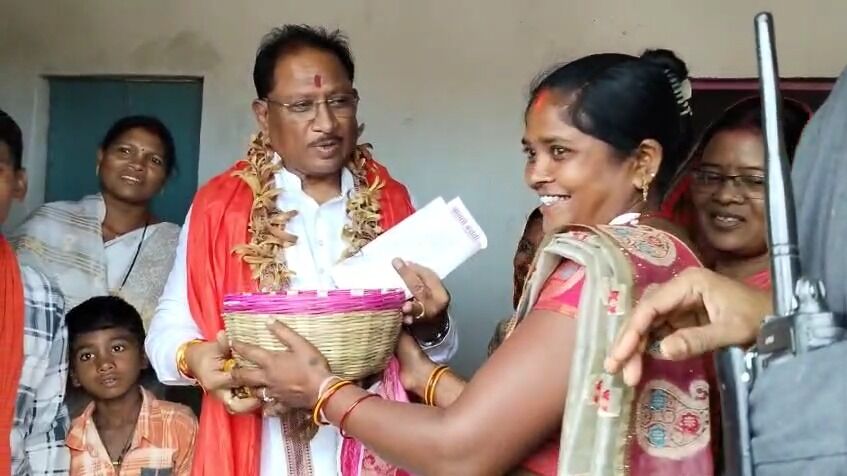 पहाड़ी कोरवा बस्ती में पहुंचे सीएम साय: पक्का मकान पाने वाले परिवार ने चटाई भेंट की, खिलाया तेंदू का फल