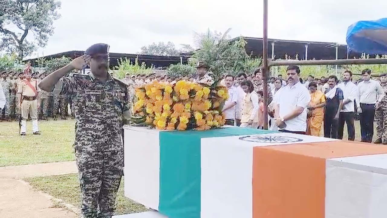 आईईडी की चपेट में आकर जवान शहीद: दिनेश नाग को बीजापुर पुलिस लाइन में दी गई अंतिम सलामी, परिजन भी पहुंचे