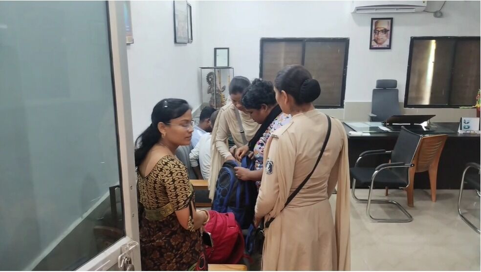 बिलासपुर जिले के राम दुलारे स्कूल में PWD सिविल इंजीनियर परीक्षा में बैठी मुन्ना बहन ने कॉलर में लगा माइक्रो कैमरा, और वॉकी टॉकी रखा था।
