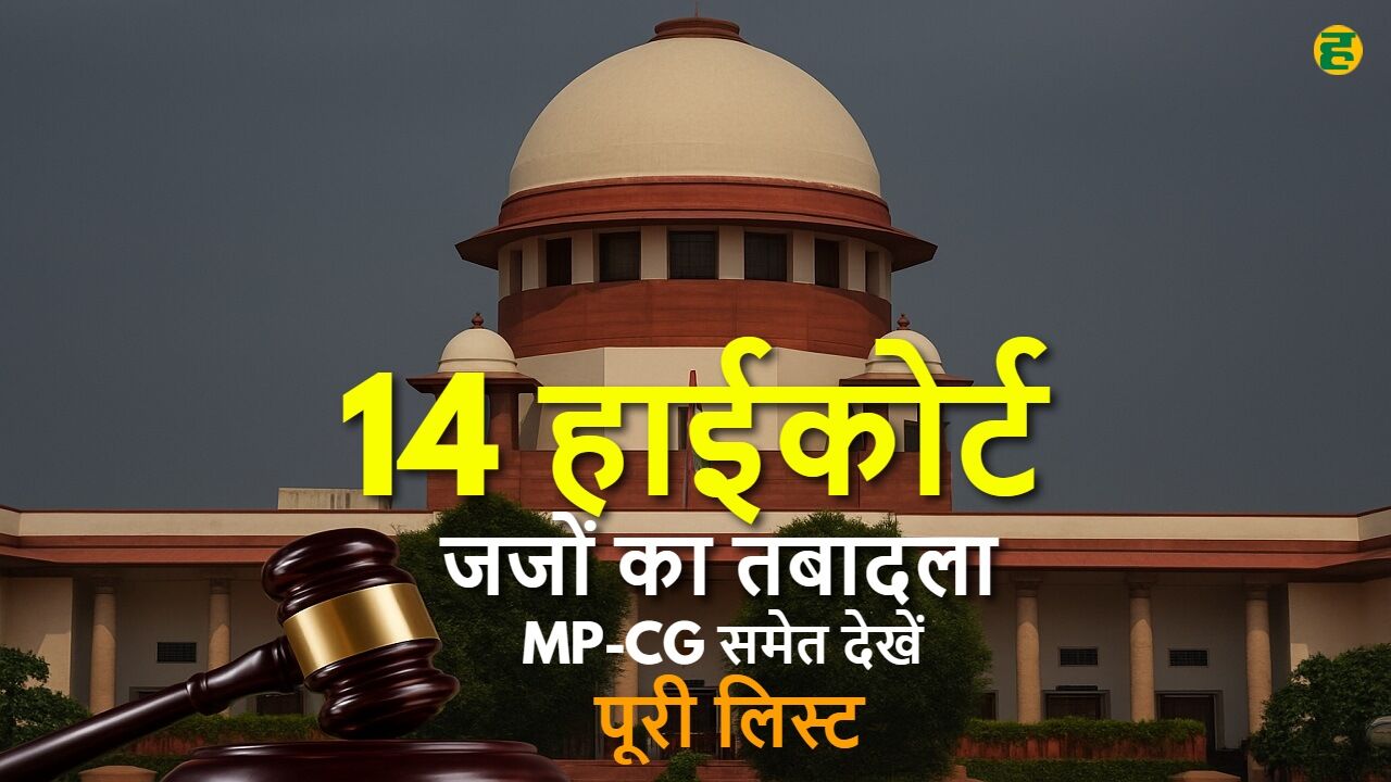 हाईकोर्ट जजों का तबादला: 14 जजों की नई नियुक्ति, छत्तीसगढ़–मध्यप्रदेश शामिल