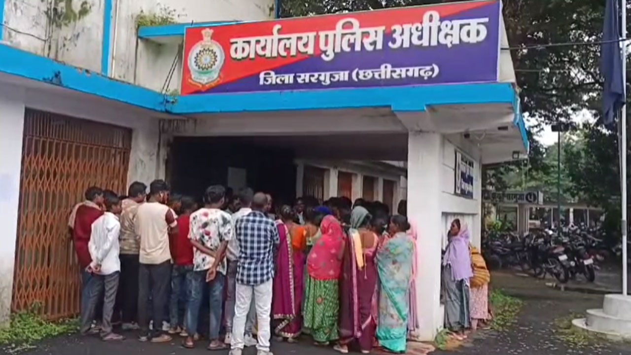 घटना के विरोध में CF जवान ग्रामीणों के साथ SP कार्यालय पहुंचे