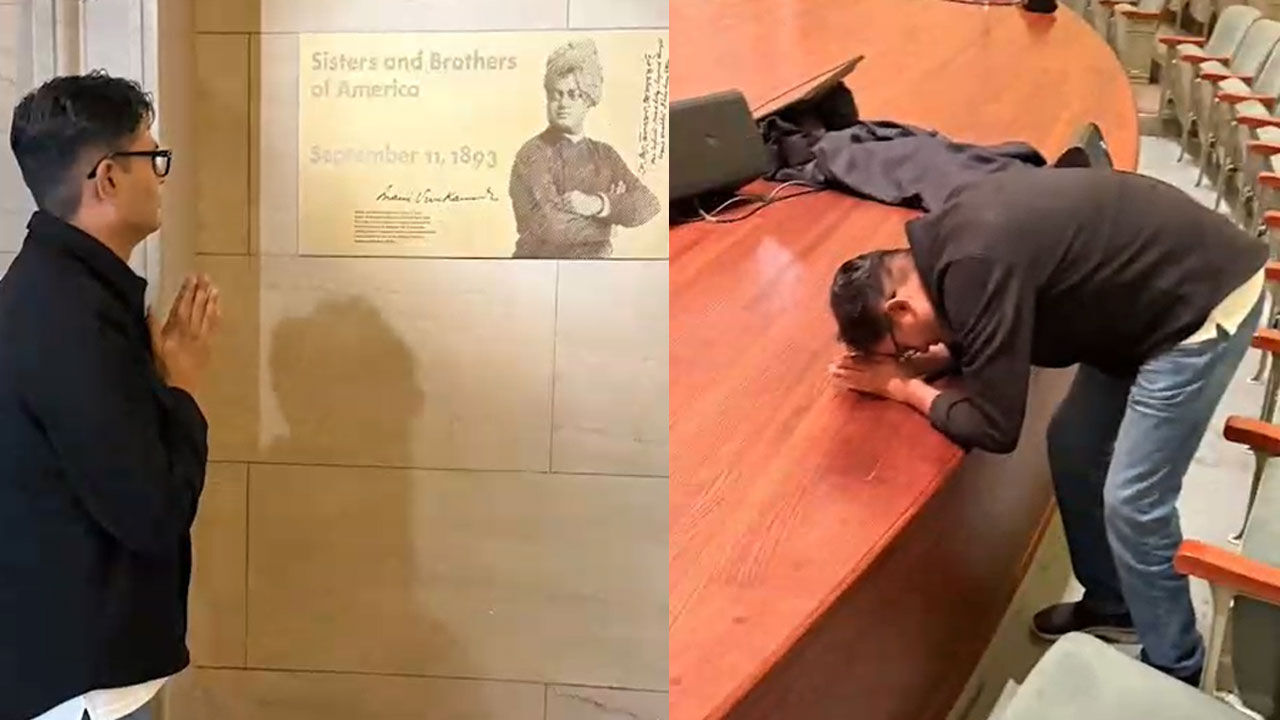 शिकागो पहुंचे वित्तमंत्री ओपी: स्वामी विवेकानंद ने जिस मंच से विश्व धर्म सम्मेलन काे किया था संबोधित, उसे किया नमन