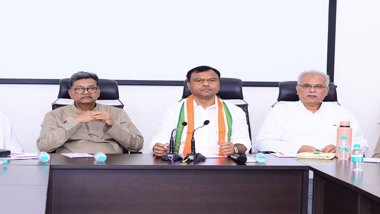 प्रेस कांफ्रेंस के पहले पूर्व सीएम बघेल, नेताप्रतिपक्ष महंत और पीसीसी दीपक बैज