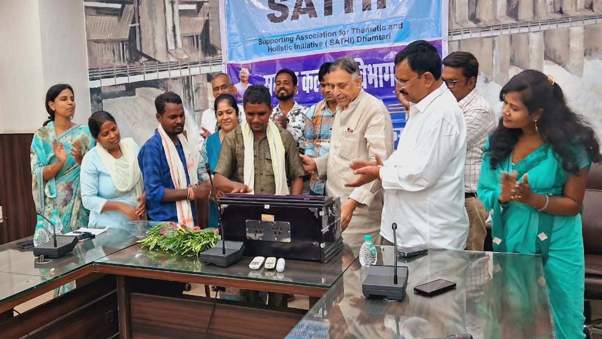 धमतरी जिले के दो दिव्यांग पंडवानी कलाकारों को समाजसेवियों और समाज कल्याण विभाग की मदद से हारमोनियम और बैशाखी प्रदान की गई।