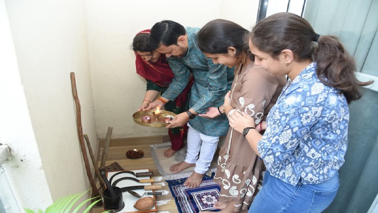 परिवार के साथ पूजा करते हुए विधायक अनुज शर्मा