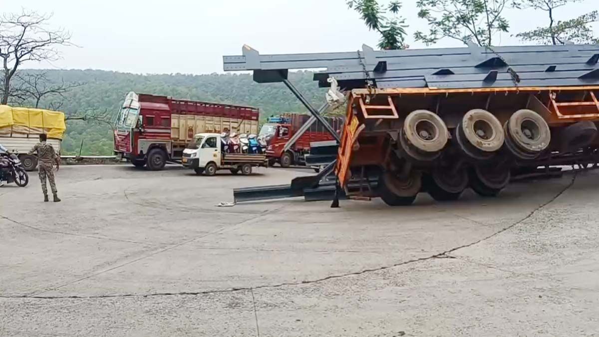 केशकाल घाट पर ट्रेलर पलटा: नेशनल हाइवे पर लगा लंबा जाम, यात्रियों को हो रही परेशानी