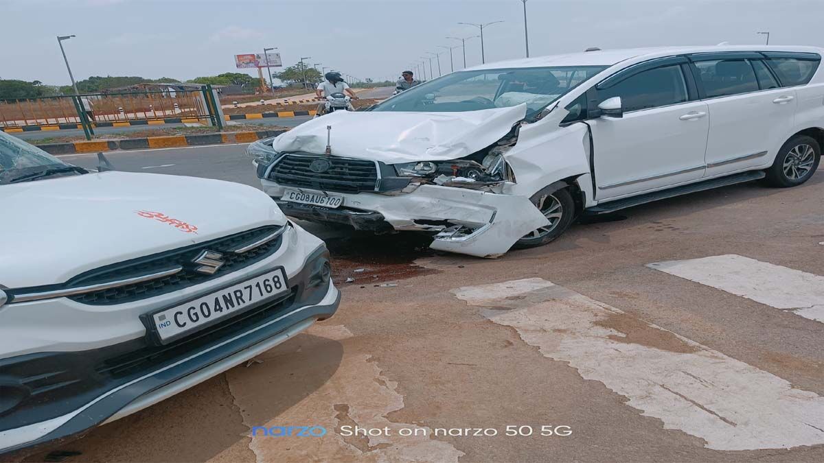 CRPF के DIG की इनोवा कार दुर्घटनाग्रस्त: नवा रायपुर में सेलेरियो कार से टकराई, चार लोग गंभीर रूप से घायल