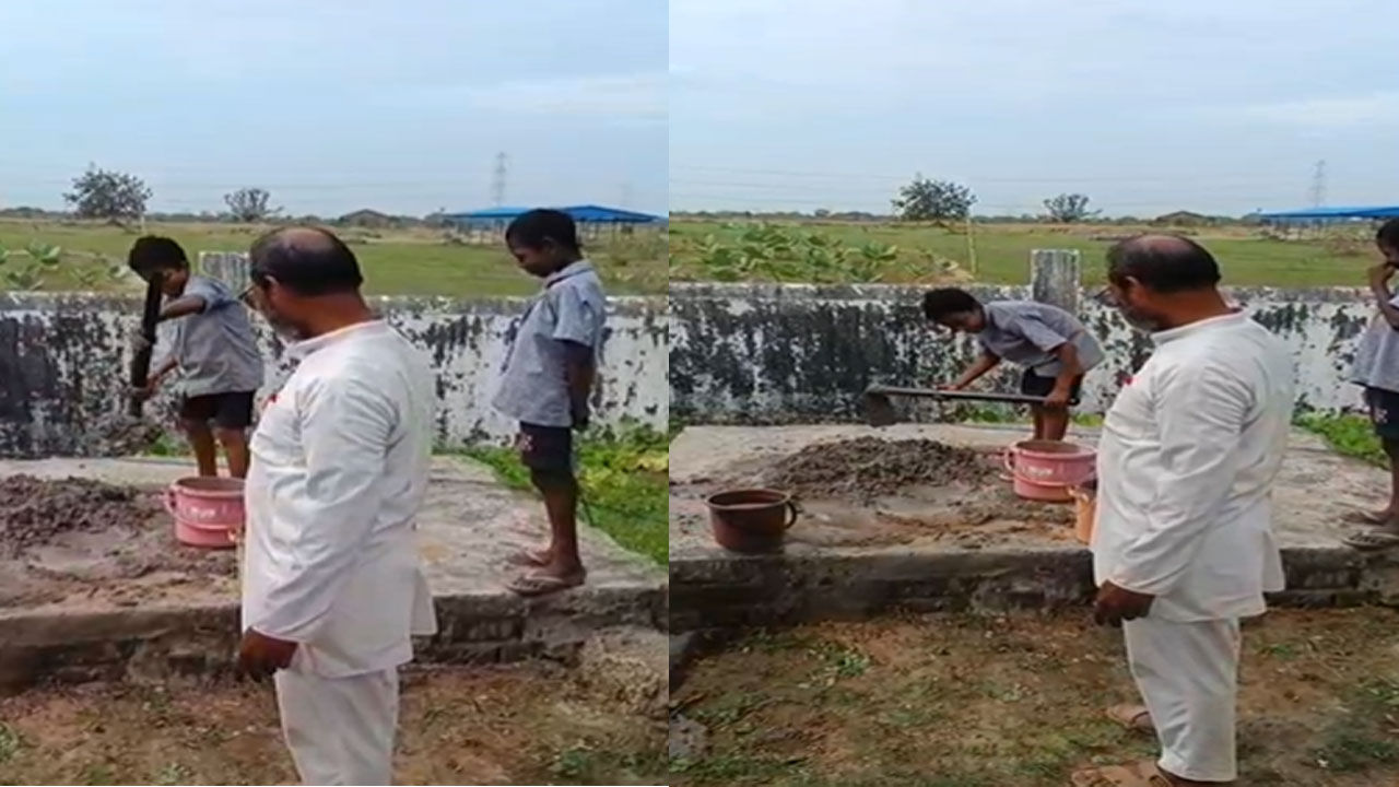 स्कूल में बच्चों से मजदूरी कराते हुए प्रधान पाठक