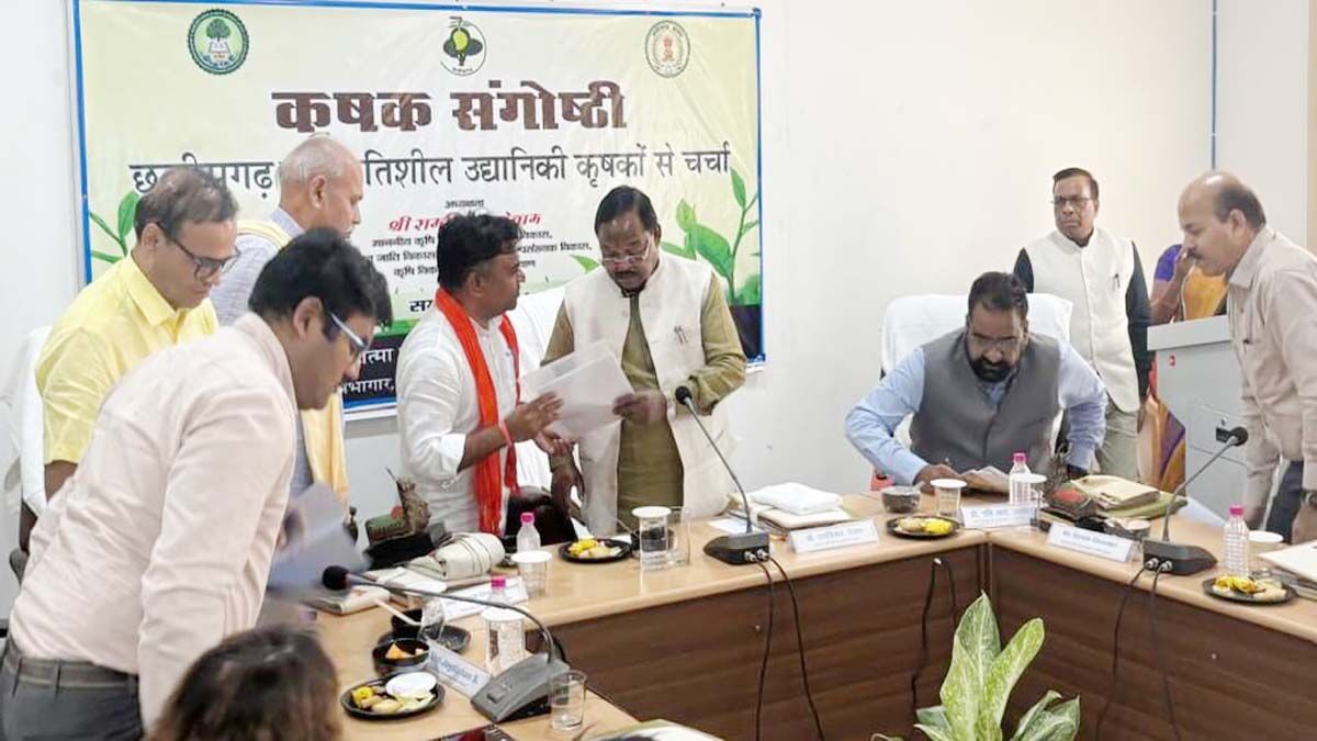 इंदिरा गांधी कृषि विश्वविद्यालय में आयोजित राज्य स्तरीय उद्यानिकी संगोष्ठी में धमतरी जिला पंचायत अध्यक्ष अरुण कुमार सार्वा ने जल, जमीन और जनहित को ध्यान में रखते हुए 10 सूत्रीय मांगों वाला पत्र कृषि मंत्री रामविचार नेताम को सौंपा।