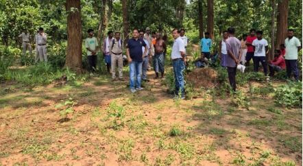वन भूमि का जायजा लेते फारेस्ट विभाग के अधिकारी