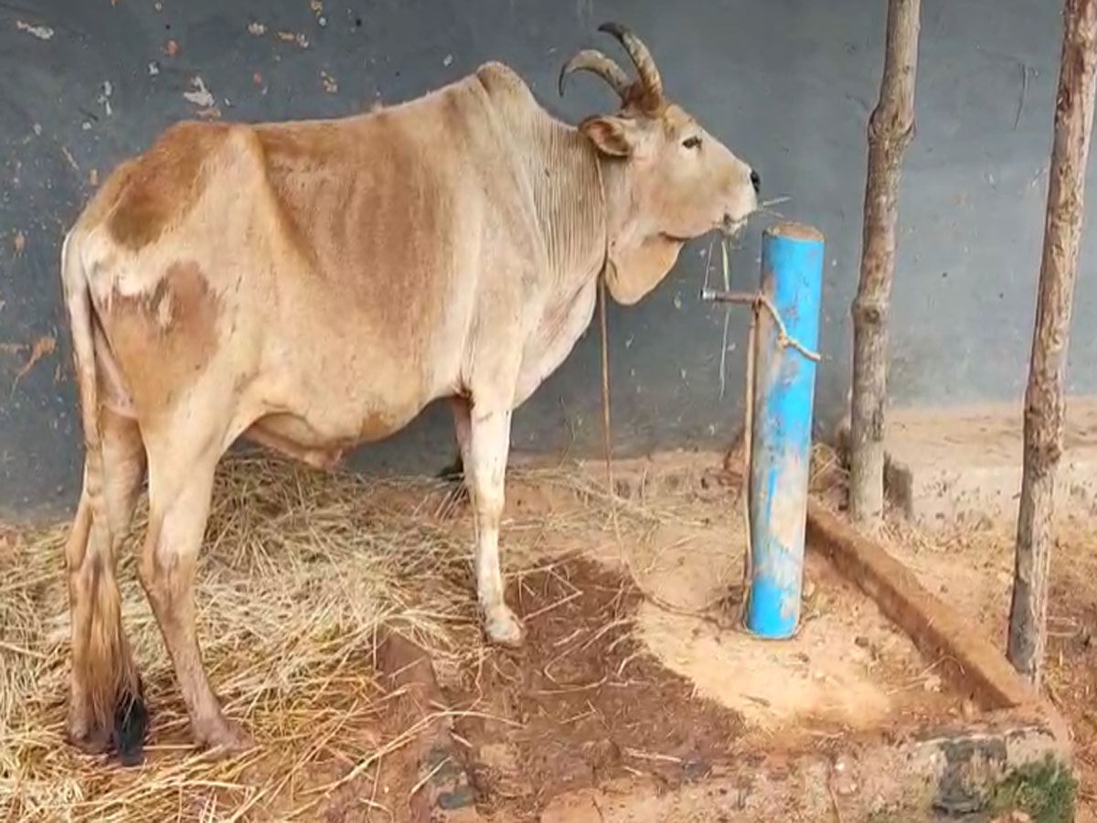 जल जीवन मिशन के तहत लगाए गए नल बंधा मवेशी