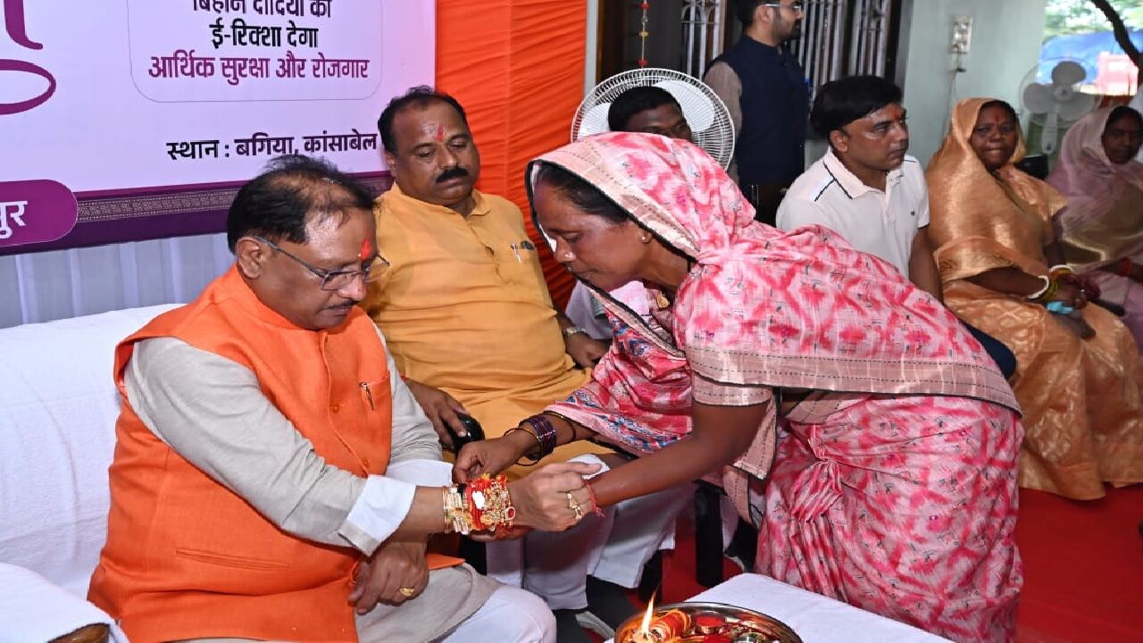 सीएम विष्णुदेव साय के गृह ग्राम बगिया कैम्प कार्यालय में रक्षाबंधन के अवसर पर विभिन्न योजनाओं से लाभान्वित दीदीयों ने राखी बांधी।