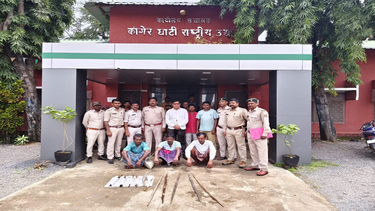मुख्य वन संरक्षक, स्टॉयलो मण्डावी (भा.व.से) वन्यप्राणी के मार्गदर्शन में कांगेर घाटी राष्ट्रीय उद्यान के निदेशक संदीप बालगा, सहायक वन संरक्षक कमल नारायण तिवारी एवं गठित विशेष जांच दल द्वारा संयुक्त कार्रवाई करते हुए दोनों अपराधियों को न्यायालय के समक्ष प्रस्तुत किया गया, जहां से उन्हें न्यायिक हिरासत में जेल भेज दिया गया।
