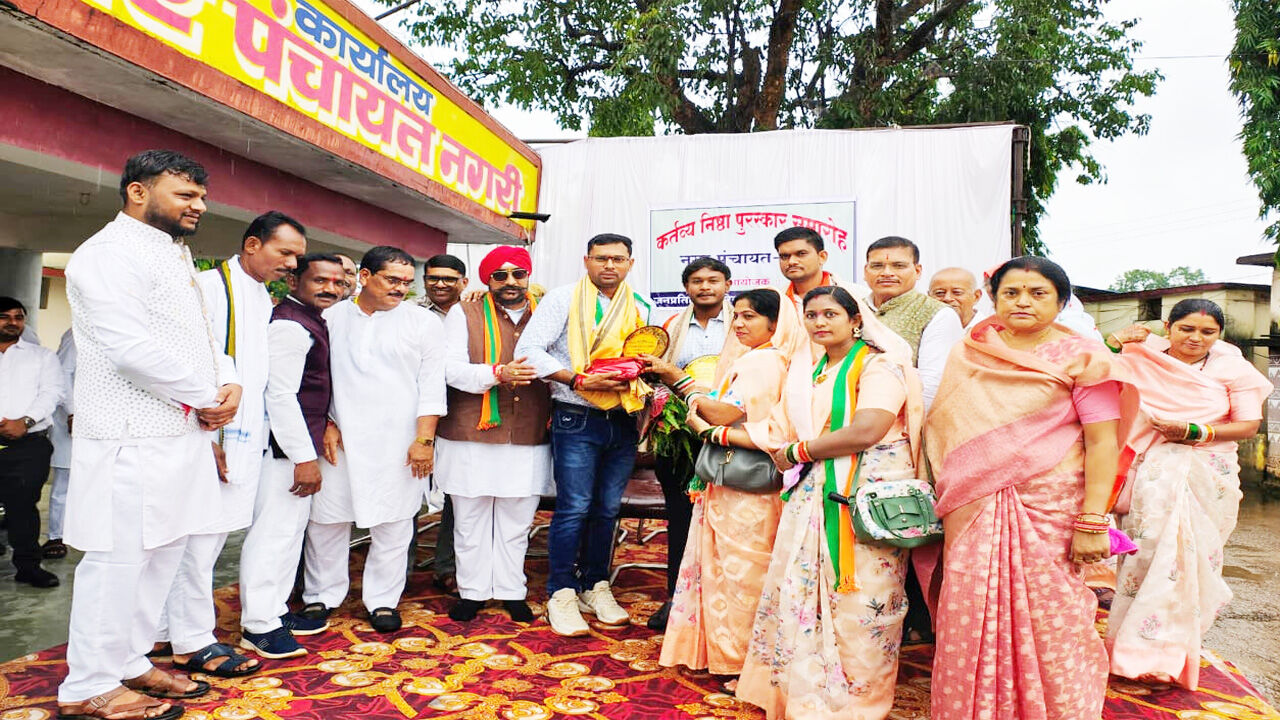 कर्मनिष्ठा सम्मान समारोह: नगरी में नगर पंचायत के तीन कर्मचारियों का हुआ सम्मान