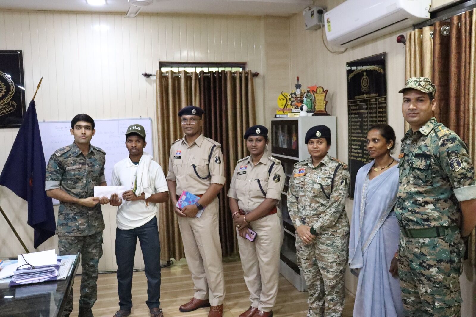 कोंडागांव में 16 लाख के इनामी नक्सली दंपति रैसिंग कुमेटी और पुनाय आचला ने पुलिस अधीक्षक के समक्ष आत्मसमर्पण किया।