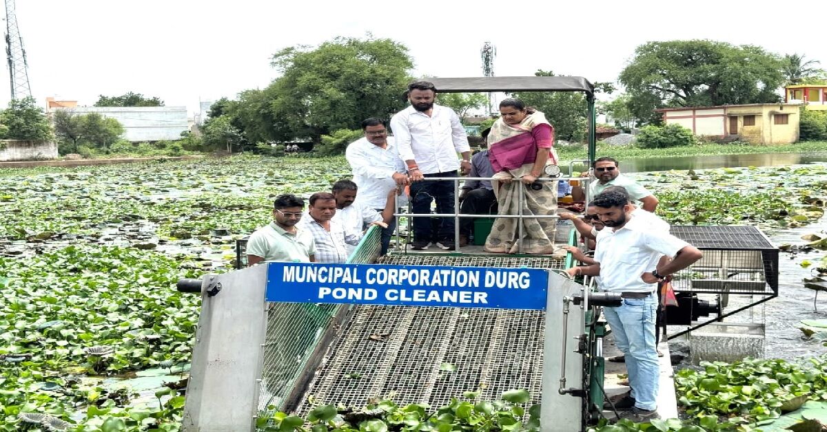 कुरुद के जलसन तालाब की सफाई पोंड गार्बेज क्लीनिंग मशीन से हो रही है। नगर पंचायत अध्यक्ष ज्योति चंद्राकर की संयुक्त पहल पर यह दुर्ग से मंगाई गई है।