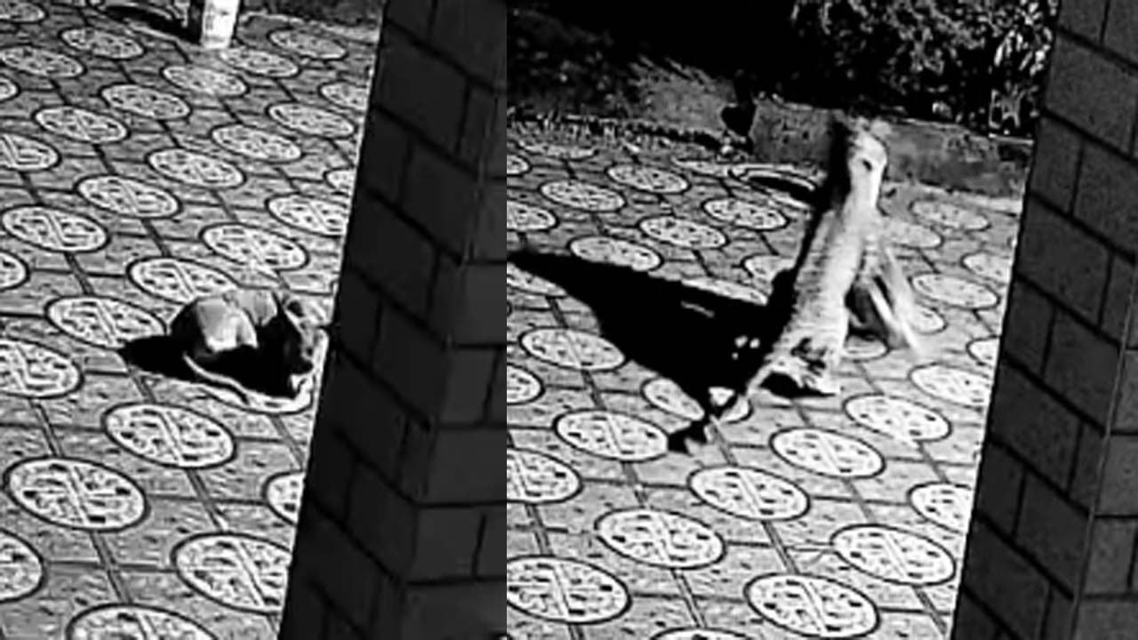 पालतू कुत्ते का शिकार करता हुआ तेंदुआ