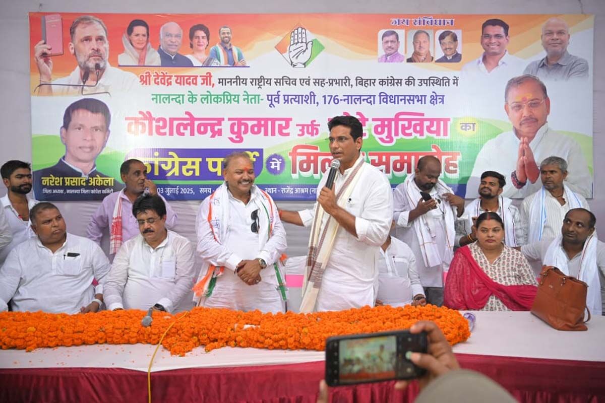 बिहार पहुंचे देवेंद्र यादव: सह प्रदेश प्रभारी के समक्ष नालंदा में भाजपा प्रत्याशी रहे छोटे मुखिया ने किया कांग्रेस प्रवेश