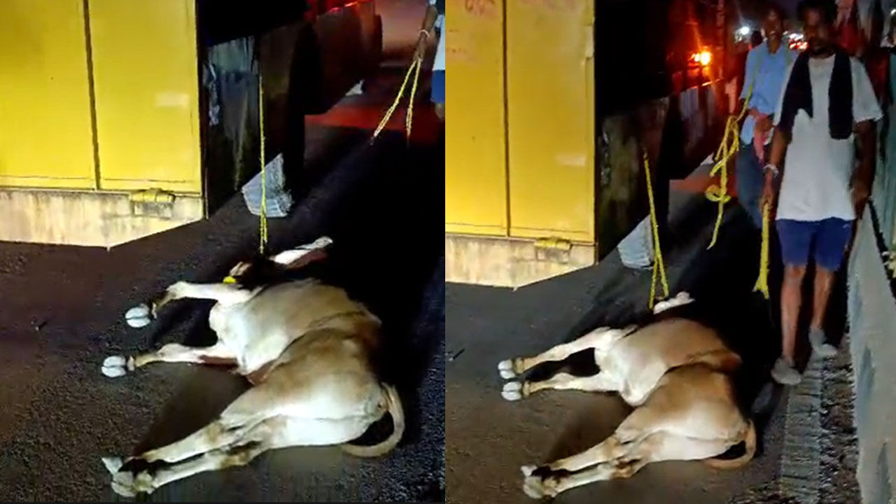 नगर पालिका कर्मचारियों की अमानवीय हरकत: बैल को रस्सी से बांधकर घसीटते हुए ले जाया गया, वीडियो आया सामने