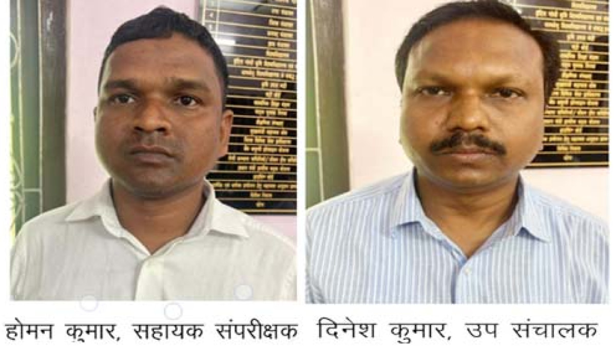 आनंद नारायण ओझा-दुर्ग। छत्तीसगढ़ के दुर्ग जिले में एंटी करप्शन ब्यूरो की टीम ने रिश्वत लेने वाले दो कर्मचारी के खिलाफ बड़ी कार्रवाई की है। राज्य संपरीक्षक कार्यालय के उपसंचालक दिनेश कुमार और सहायक संपरीक्षक होमन कुमार को 6 हज़ार रूपए का रिश्वत लेते हुए गिरफ्तार किया है।