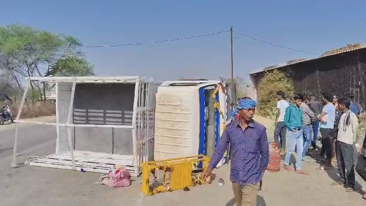 अनियंत्रित होकर पलटी मासदा वाहन : दर्जनभर से ज्यादा लोग घायल, जीत की खुशी में पंच लेकर जा रहा था मड़वा रानी