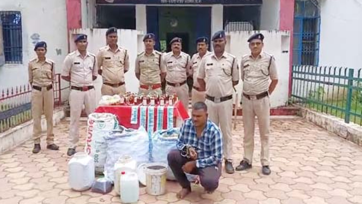पुलिस की बड़ी कार्रवाई: नकली शराब बना रहे युवक को पुलिस ने किया गिरफ्तार, चार लाख का सामान जब्त