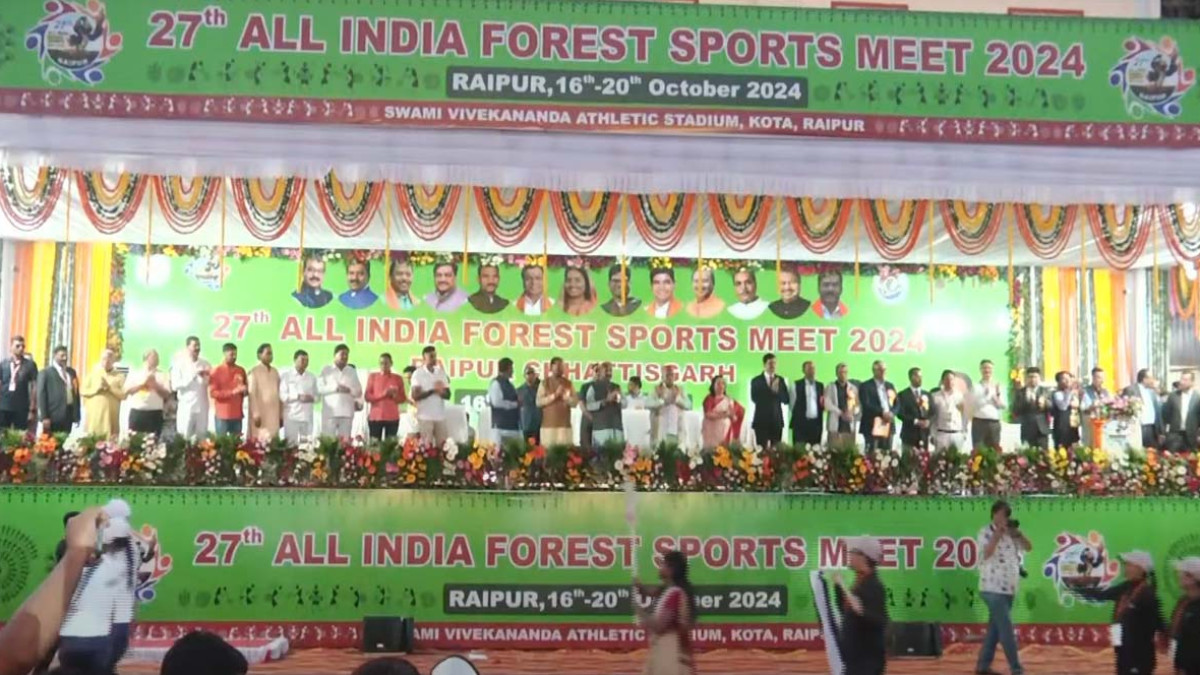 अखिल भारतीय वन खेल महोत्सव का बुधवार की शाम राजधानी रायपुर में आगाज हो गया है। क्रिकेटर सूर्य कुमार यादव भी उद्घाटन समारोह में मौजूद हैं।