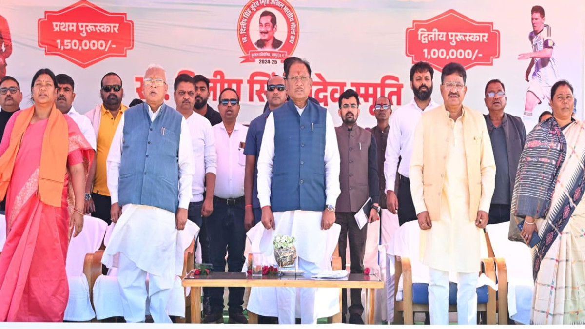 छत्तीसगढ़ के सीएम विष्णुदेव साय अखिल भारतीय गोल्ड कप फुटबॉल प्रतियोगिता के समापन समारोह में शामिल हुए। इस दौरान सीएम ने विजेता टीम को बधाई दी।