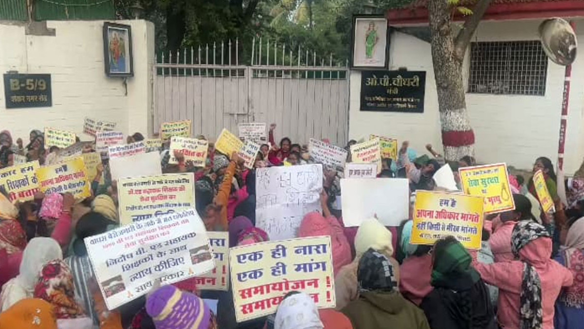 B.ED सहायक शिक्षकों का प्रदर्शन : महिलाओं ने मंत्री ओपी चौधरी के बंगले का किया घेराव, समायोजन की मांग को लेकर अड़ी