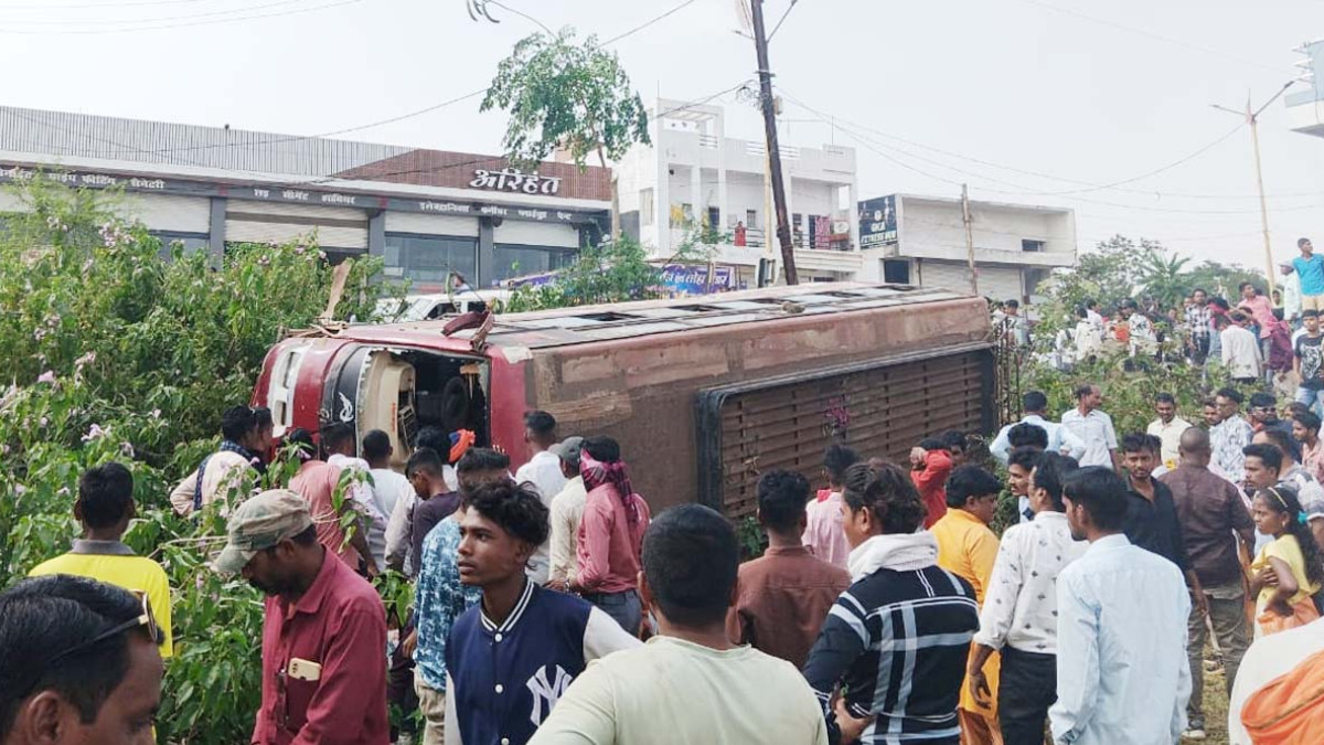 यात्रियों से भरी बस पलटी : रेलिंग से टकराने पर हादसा, 12 यात्रियों की आईं गंभीर चोटें