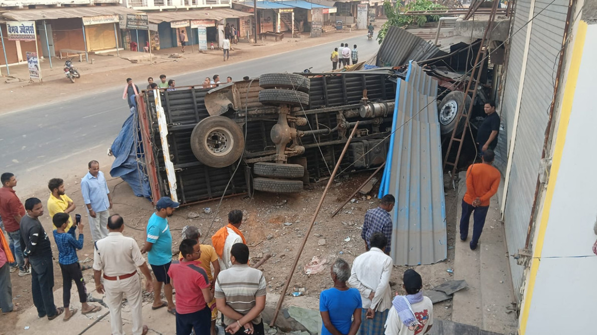 कुश अग्रवाल -बलौदा बाजार । छत्तीसगढ़ के बलौदाबाजार जिले में तेज रफ्तार ट्रक अनियंत्रित होकर सड़क किनारे स्थित एक जनरल स्टोर्स की दुकान में जा घुसा । इससे पहले ट्रक ने सड़क किनारे लगे बिजली के खंभे को तोड़ दिया। दुर्घटना इतनी भीषण थी कि दुकान के सामने लगा टीन का शेड और शटर क्षतिग्रस्त हो गए और ट्रक पलट गई। गनीमत रही कि इसमें किसी प्रकार की जनहानि नहीं हुई। ट्रक चालक और क्लीनर दोनों सुरक्षित बच गए। घटना की जानकारी मिलते ही पलारी पुलिस मौके पर पहुंची और जांच शुरू की।