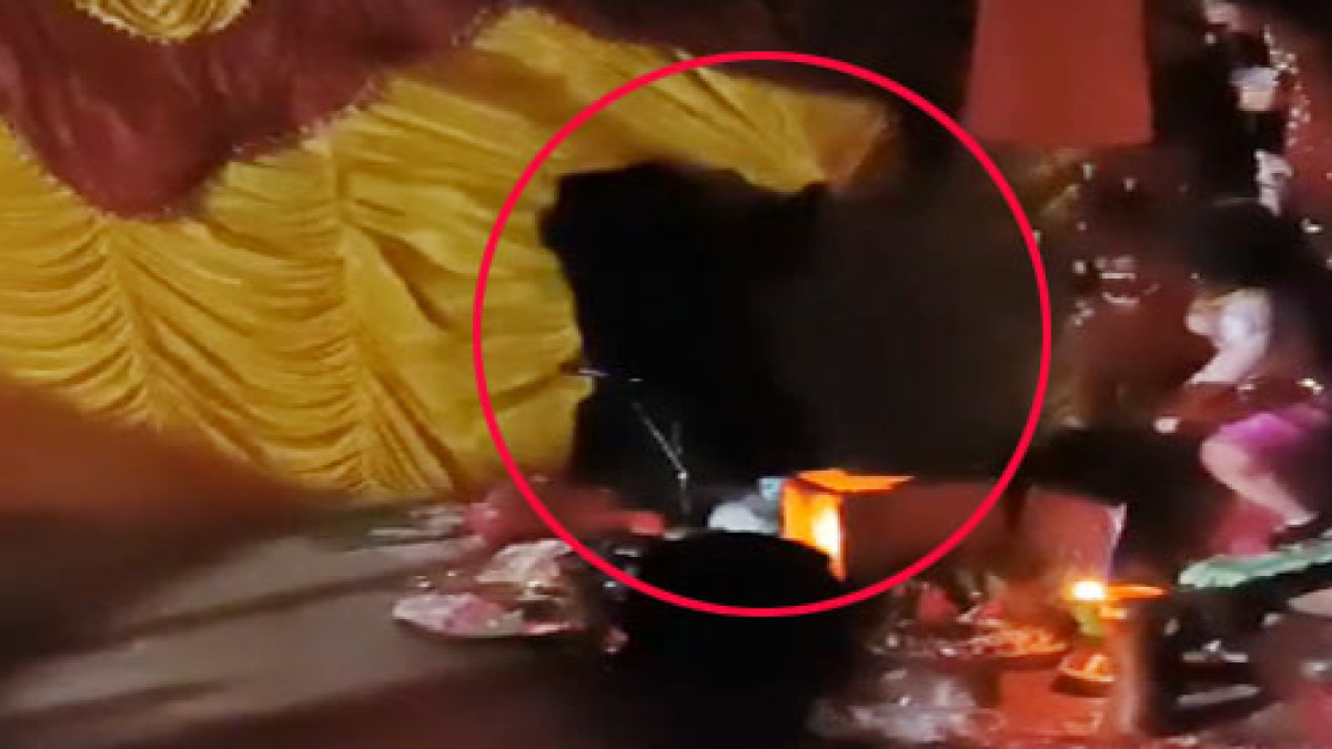 दुर्गा पंडाल में अचानक घुसा भालू : तेल पीने की फिराक में था, लोगों ने चिल्लाया तो भागा