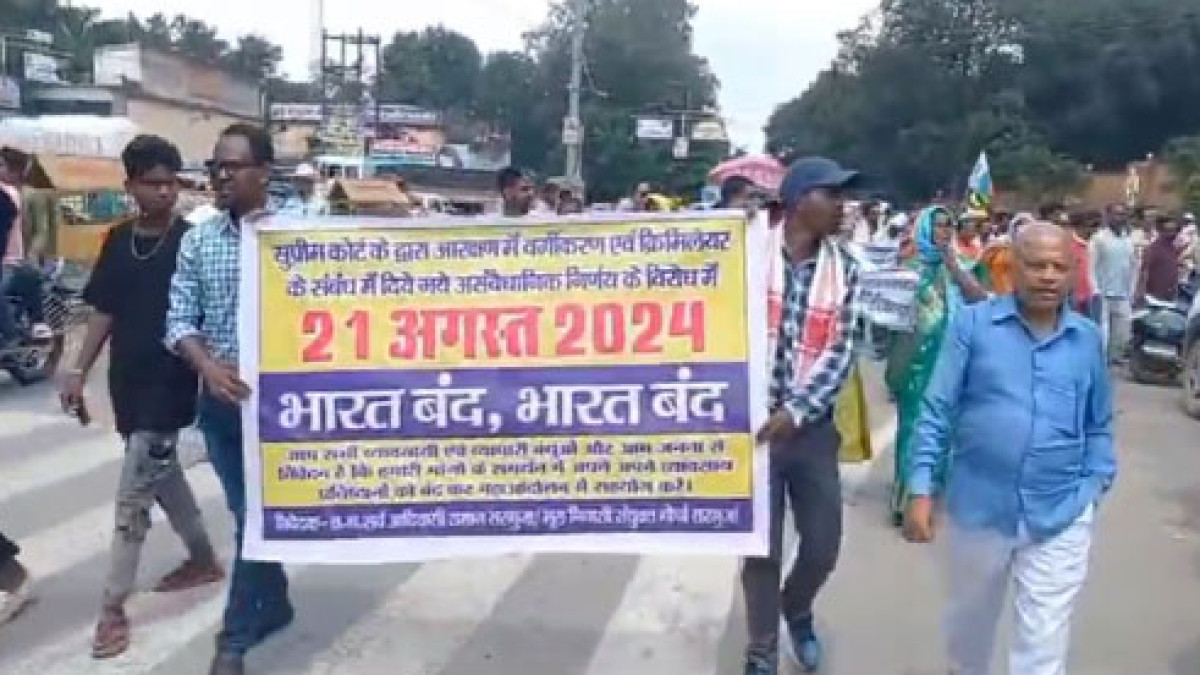 छत्तीसगढ़ के अलग-अलग जिलों में दिखा भारत बंद का व्यापक असर, सुप्रीम कोर्ट के SC आरक्षण में क्रीमीलेयर लागू करने के फैसले के खिलाफ सड़कों पर उतरा सर्व आदिवासी समाज. #Chhattisgarh #BharatBandh2024 pic.twitter.com/OopRBqkxM7