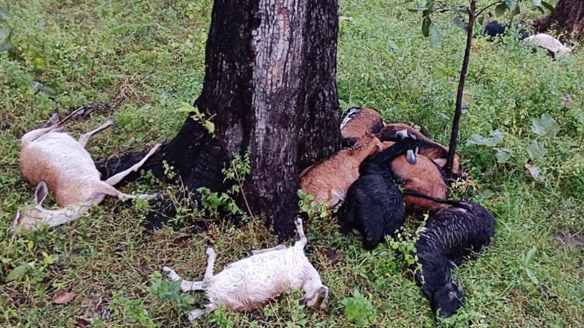 बीजापुर में बिगड़ा मौसम : आकाशीय बिजली गिरने से 11 बकरियों की मौत