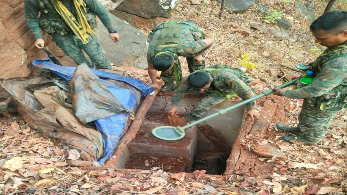 पहाड़ियों में सुरंग : नक्सलियों ने सामान छिपाने बना रखे थे बंकर, जवानों ने किया नष्ट, सामान बरामद